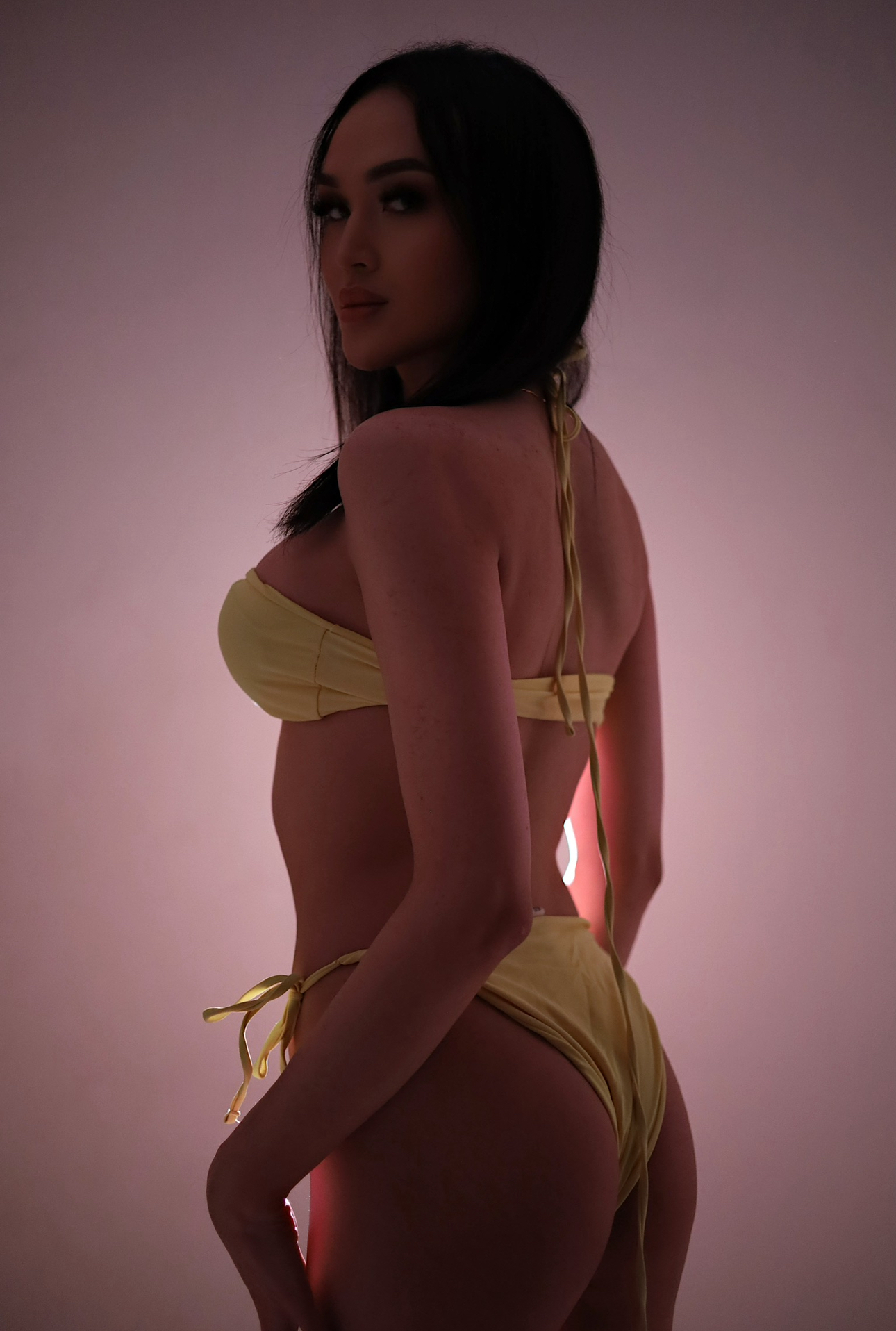 - Волосы: Брюнетка
